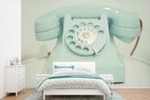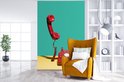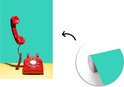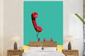 Papier peint photo - Un téléphone rétro rouge sur fond jaune devant un mur végétal - Salon - Chambre - Chambre d'enfant