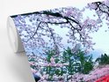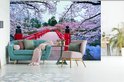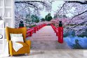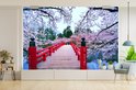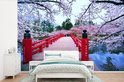Papier peint - Papiers Papier peint photo - Cerisiers en fleurs sur un pont rouge au Japon - Largeur 420 cm x Hauteur 280 cm