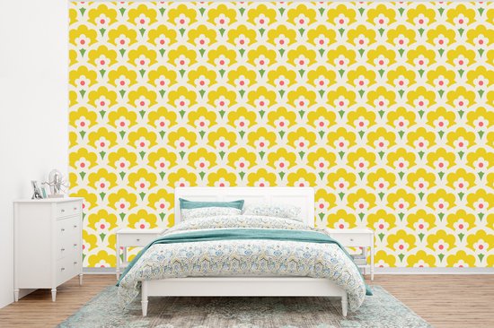 Papier Peint - Papiers Papier peint photo Design - Rétro - Seventies - Jaune - Largeur 295 cm x Hauteur 220 cm
