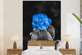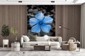 Papier peint - Papiers Papier peint photo Fleurs - Blauw - Zwart - Wit - Largeur 225 cm x hauteur 350 cm