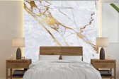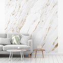 Papier peint - Papiers Papier peint photo Marbre - Wit - Or - Pierre - Largeur 280 cm x Hauteur 280 cm