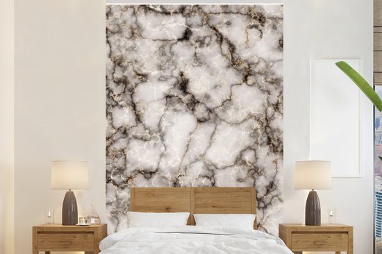 Papier peint - Papiers Papier peint photo Marbre - Wit - Zwart - Largeur 195 cm x Hauteur 300 cm