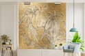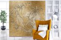 Papier Peint - Papiers Papier peint photo Palmiers - Éléphants - Enfants - Or - Largeur 240 cm x Hauteur 240 cm