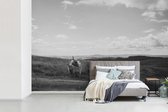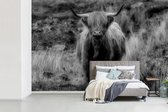 Papier peint - Papiers Papier peint photo Rayons de soleil brillent sur Highlander écossais - noir et blanc - Largeur 525 cm x hauteur 350 cm