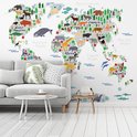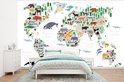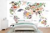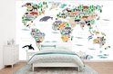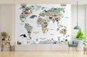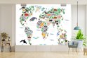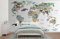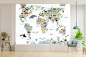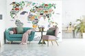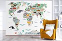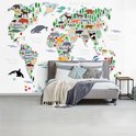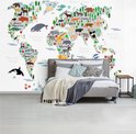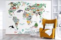 Papier peint - Papiers Papier peint photo Wereldkaart - Enfants - Animaux - Plantes - Largeur 375 cm x Hauteur 280 cm