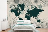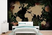 Papier peint - Papiers Papier peint photo Wereldkaart - Plantes - Fleurs - Largeur 280 cm x Hauteur 280 cm
