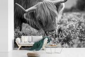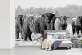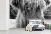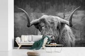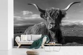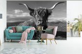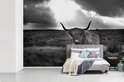 Papier peint - Papiers peints Les rayons du soleil brillent sur les Highlanders écossais - noir et blanc - Largeur 360 cm x Hauteur 240 cm