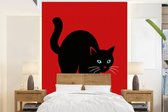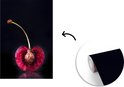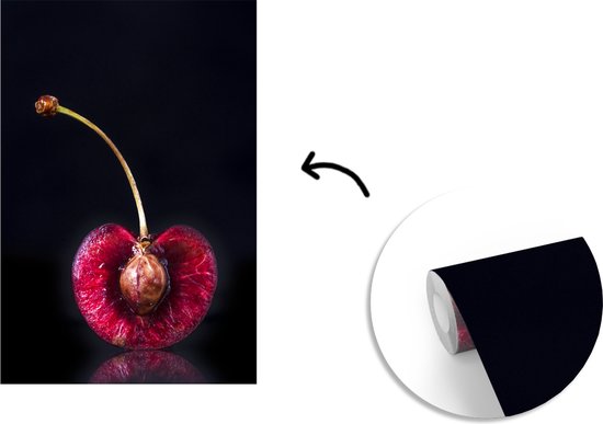 Papier peint photo en vinyle - Coupe transversale d'une cerise avec la pierre sur fond noir largeur 175 cm x hauteur 260 cm - Tirage photo sur papier peint (disponible en 7 tailles)