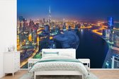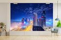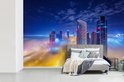 Papier peint photo en vinyle - La tour de Dubaï s'élève au-dessus des nuages dans la nuit de largeur 525 cm x hauteur 350 cm - Tirage photo sur papier peint (disponible en 7 tailles)