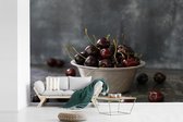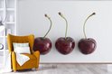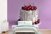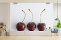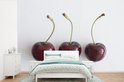 Papier peint photo en vinyle - Trois cerises mûres d'affilée sur fond blanc largeur 420 cm x hauteur 280 cm - Tirage photo sur papier peint (disponible en 7 tailles)