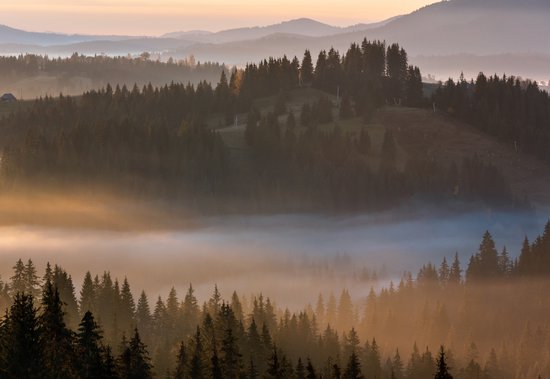 Papier peint photo - Papier peint intissé - Paysage brumeux avec Arbres - Forêt dans la brume - 520 x 318 cm