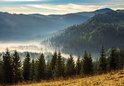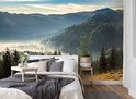 Papier peint photo - Montagnes - Arbres - Brouillard - Paysage - Papier peint non tissé - (254 x 184 cm)