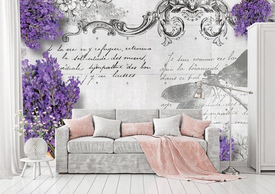 Papier peint photo - Papier Peint Intissé - Mur Vintage avec Fleurs - 254 x 184 cm