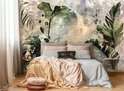 Papier peint photo - Papier Peint Vinyl - Jungle Art sur Mur Béton - Feuilles - Plantes - 520 x 318 cm