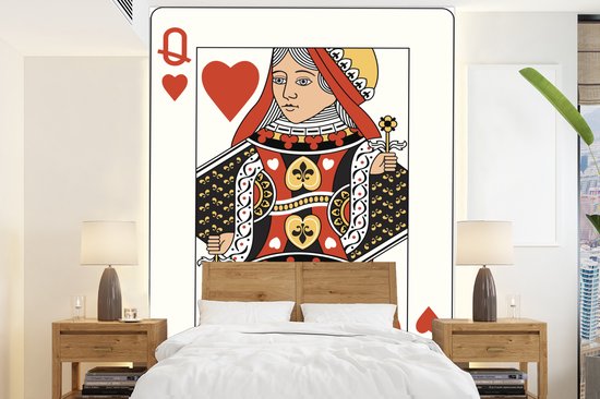 Papier peint photo peint Cartes à jouer - Illustration reine des coeurs carte à jouer largeur 190 cm x hauteur 260 cm - Tirage photo sur papier peint vinyl (disponible en 7 formats) - chambre/séjour/bureau
