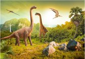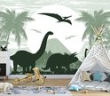 Papier peint photo Peint Intissé - Dinosaures Verts - Dino's - 208 x 146 cm
