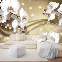 Papier peint photo Peint Intissé - Orchidées Scintillantes et Diamants - 254 x 184 cm