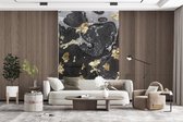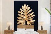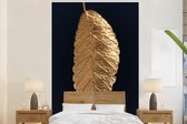 Papier peint photo peint photo Portrait de feuilles d'or - Feuille d' or avec des lames sur fond noir fotobehang vinyle largeur 145 cm x hauteur 220 cm - Impression photo sur papier peint vinyle (existe en 7 tailles) - chambre/salon/bureau