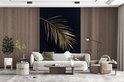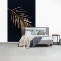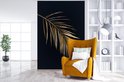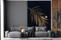 Papier peint photo peint photo Portrait de feuilles d'or - Feuille d' or avec des lames sur fond noir fotobehang vinyle largeur 145 cm x hauteur 220 cm - Impression photo sur papier peint vinyle (existe en 7 tailles) - chambre/salon/bureau