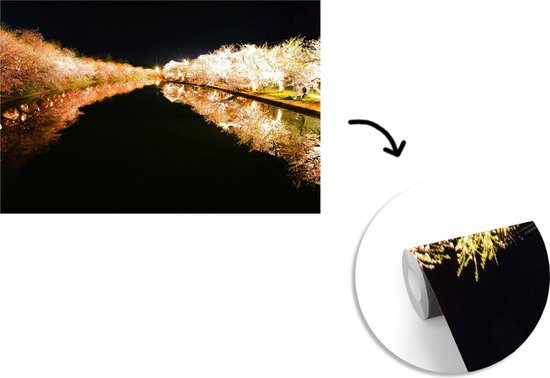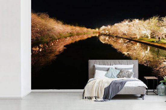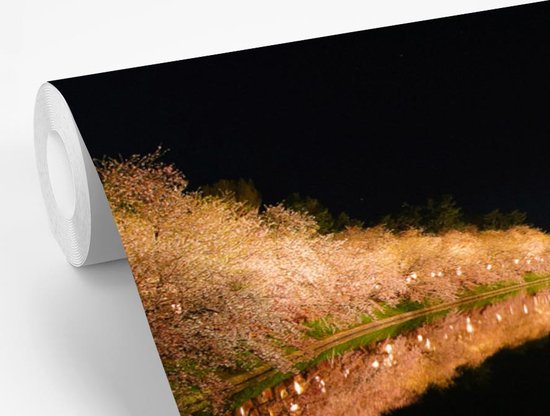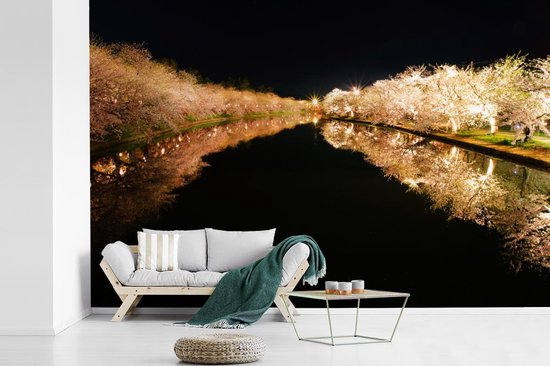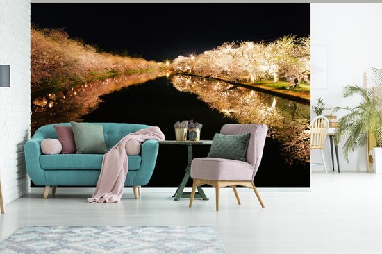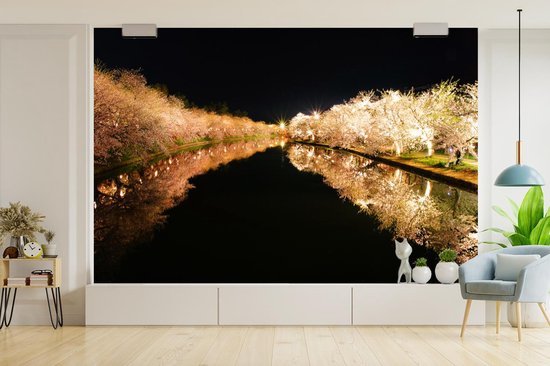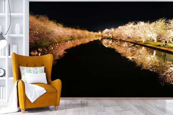 Papier peint photo peint photo vinyle - Cerisiers illuminés au bord de l'eau largeur 330 cm x hauteur 220 cm - Tirage photo sur papier peint (disponible en 7 tailles)