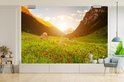 Papier peint photo peint photo vinyle - Champ de fleurs entre les montagnes largeur 420 cm x hauteur 280 cm - Tirage photo sur papier peint (disponible en 7 tailles)
