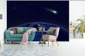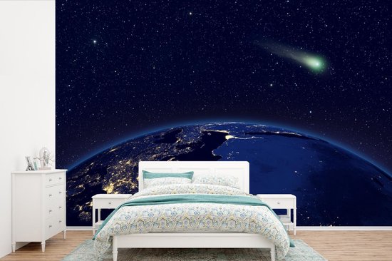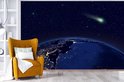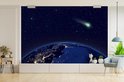 Papier peint photo peint photo vinyle - Comète au dessus d'une terre bleue largeur 330 cm x hauteur 220 cm - Tirage photo sur papier peint (disponible en 7 tailles)