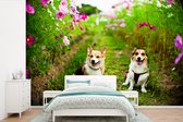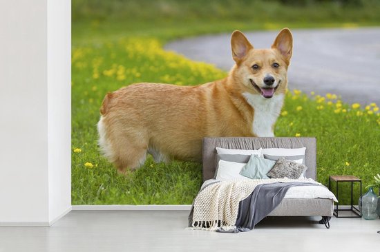 Papier peint photo peint photo vinyle - Corgi entre les fleurs largeur 330 cm x hauteur 220 cm - Tirage photo sur papier peint (disponible en 7 tailles)