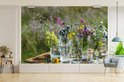 Papier peint photo peint photo vinyle - Fleurs dans des vases sur une table largeur 420 cm x hauteur 280 cm - Tirage photo sur papier peint (disponible en 7 tailles)