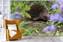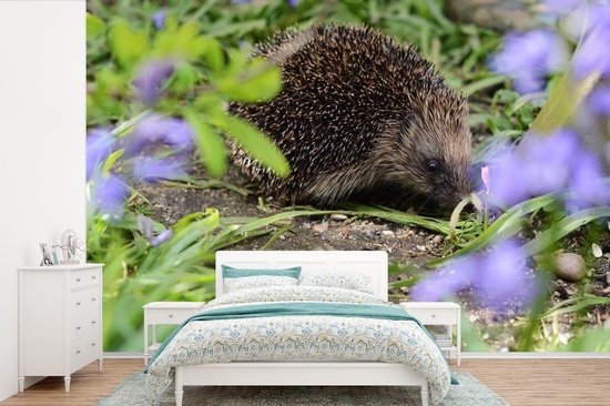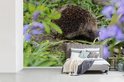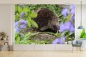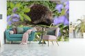 Papier peint photo peint photo vinyle - Hérisson derrière les fleurs largeur 600 cm x hauteur 400 cm - Tirage photo sur papier peint (disponible en 7 tailles)