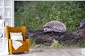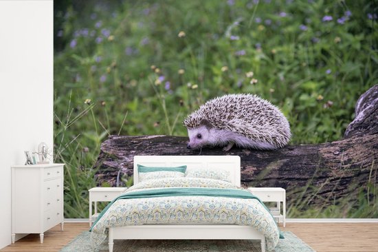 Papier peint photo peint photo vinyle - Hérisson sur souche d'arbre largeur 360 cm x hauteur 240 cm - Tirage photo sur papier peint (disponible en 7 tailles)