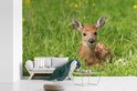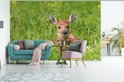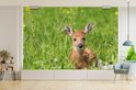 Papier peint photo peint photo vinyle - Jeune cerf couché dans l'herbe largeur 330 cm x hauteur 220 cm - Tirage photo sur papier peint (disponible en 7 tailles)