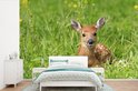 Papier peint photo peint photo vinyle - Jeune cerf couché dans l'herbe largeur 360 cm x hauteur 240 cm - Tirage photo sur papier peint (disponible en 7 tailles)