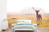 Papier peint photo peint photo vinyle - Jeune cerf court sur l'herbe largeur 390 cm x hauteur 260 cm - Tirage photo sur papier peint (disponible en 7 tailles)
