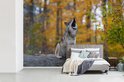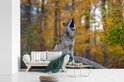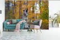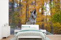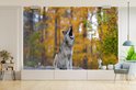 Papier peint photo peint photo vinyle - Loup hurlant au début de l'automne largeur 330 cm x hauteur 220 cm - Tirage photo sur papier peint (disponible en 7 tailles)
