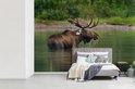 Papier peint photo peint photo vinyle - Orignal dans l'eau largeur 330 cm x hauteur 240 cm - Tirage photo sur papier peint (disponible en 7 tailles)