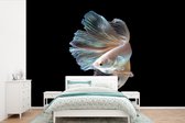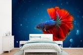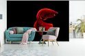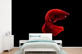 Papier peint photo peint photo vinyle - Poisson combattant siamois rouge sur fond noir largeur 600 cm x hauteur 400 cm - Tirage photo sur papier peint (disponible en 7 tailles)