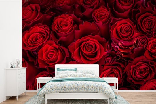 Papier peint photo peint photo vinyle - Roses rouges en fleurs largeur 420 cm x hauteur 280 cm - Tirage photo sur papier peint (disponible en 7 tailles)