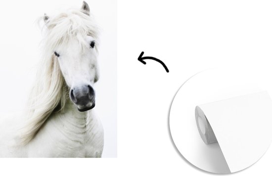 Papier peint photo peint vinyle - Cheval devant fond blanc largeur 175 cm x hauteur 260 cm - Tirage photo sur papier peint (disponible en 7 tailles)