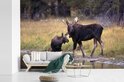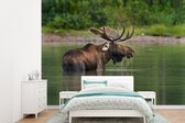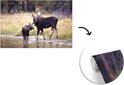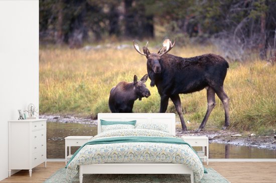 Papier peint photo peint vinyle - Elk avec son petit dans l'eau largeur 390 cm x hauteur 260 cm - Tirage photo sur papier peint (disponible en 7 tailles)