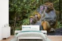 Papier peint photo peint vinyle - Famille singes rhésus largeur 390 cm x hauteur 260 cm - Tirage photo sur papier peint (disponible en 7 tailles)