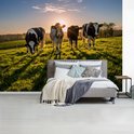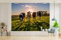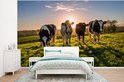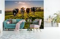 Papier peint photo peint vinyle - Quatre vaches au coucher du soleil largeur 375 cm x hauteur 280 cm - Tirage photo sur papier peint (disponible en 7 tailles)