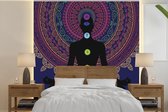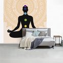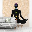 Papier peint photo peint vinyle - Sept chakras sur une silhouette méditante largeur 350 cm x hauteur 350 cm - Tirage photo sur papier peint (disponible en 7 tailles)