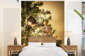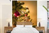 Papier peint photo peint vinyle - Une paire de boules de Noël rouges avec une étoile de Noël rouge largeur 260 cm x hauteur 260 cm - Tirage photo sur papier peint (disponible en 7 tailles)
