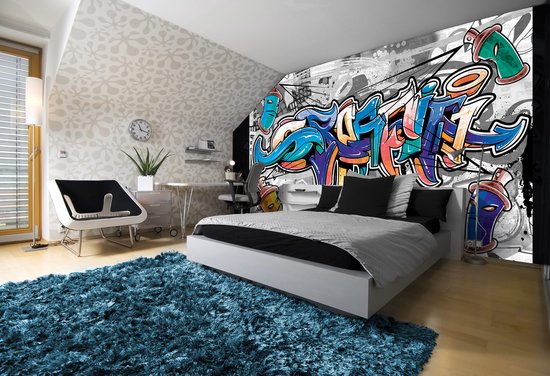 Papier peint photo Polaire | Graffiti | Bleu gris | 368x254cm (lxh)