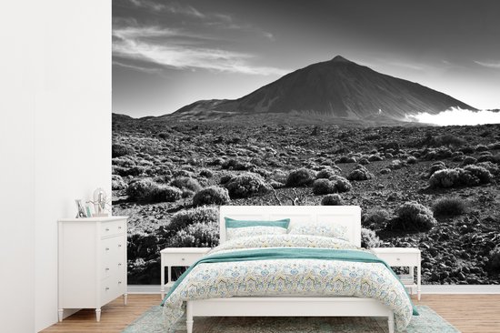 Papier peint photo Tenerife - Vue du volcan El Tei, Tenerife - Zwart- Wit largeur 305 cm x hauteur 220 cm - Impression photo sur papier peint vinyle (disponible en 7 formats) - chambre/séjour/bureau