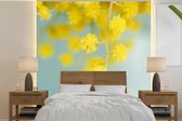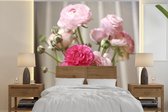 Papier peint photo vinyle - Bouquet de renoncules légères sur fond gris clair largeur 260 cm x hauteur 260 cm - Tirage photo sur papier peint (disponible en 7 tailles)