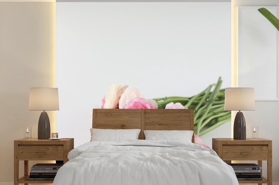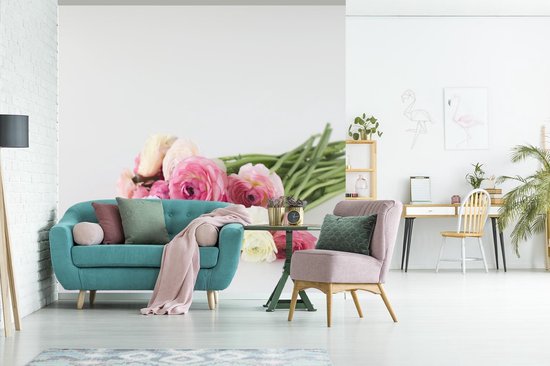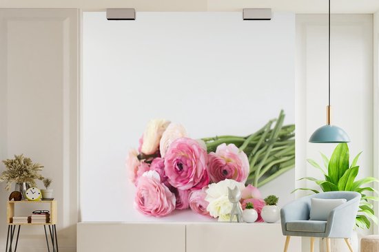 Papier peint photo vinyle - Bouquet de renoncules légères sur fond gris clair largeur 280 cm x hauteur 280 cm - Tirage photo sur papier peint (disponible en 7 tailles)