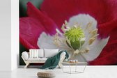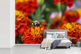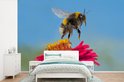 Papier peint photo vinyle - Bourdon flottant au-dessus d'une plante de Zinnia rose largeur 420 cm x hauteur 280 cm - Tirage photo sur papier peint (disponible en 7 tailles)