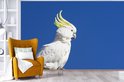 Papier peint photo vinyle - Cacatoès Witte avec une crête jaune dans un ciel bleu largeur 330 cm x hauteur 220 cm - Tirage photo sur papier peint (disponible en 7 tailles)