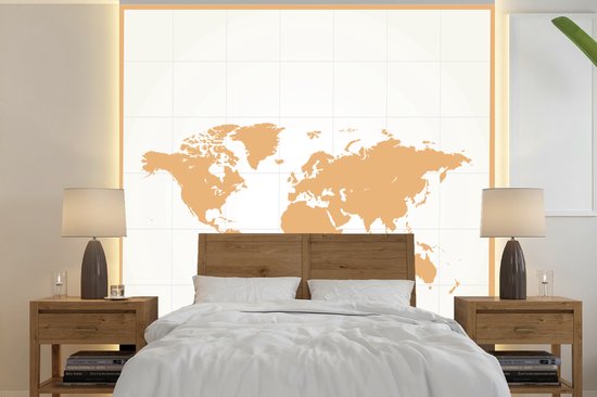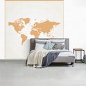 Papier peint photo vinyle - Carte du monde minimaliste en orange | Papier peint Wereldkaart largeur 280 cm x hauteur 280 cm - Tirage photo sur papier peint (disponible en 7 tailles)
